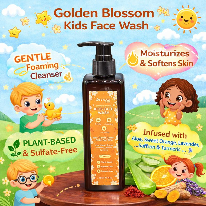 Annoor Beauty Golden Blossom Kids Face Wash (Gentle Foaming Cleanser) – 250 mL / 8 fl oz