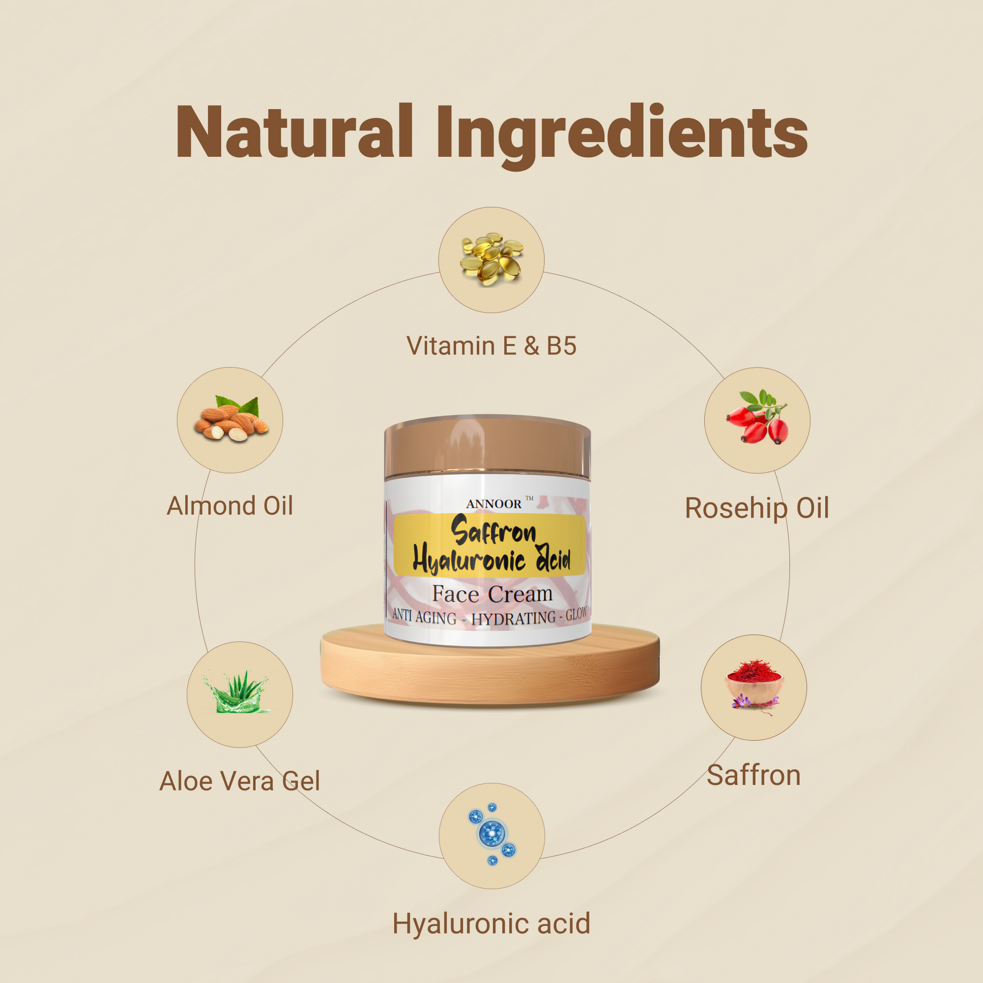 Annoor® Saffron Hyaluronic Acid Face Cream – Hydrating, Brightening & Radiance Boost