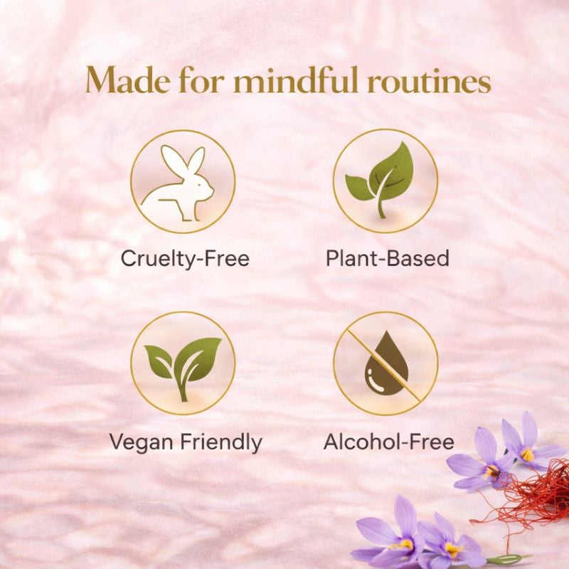 - Supports a radiant, even-looking glow with Saffron, Turmeric, and Licorice