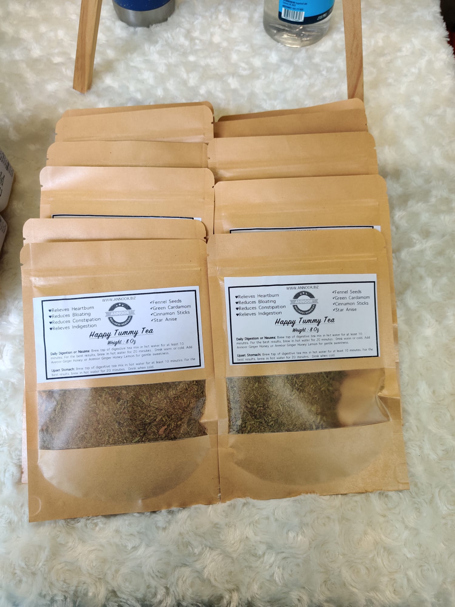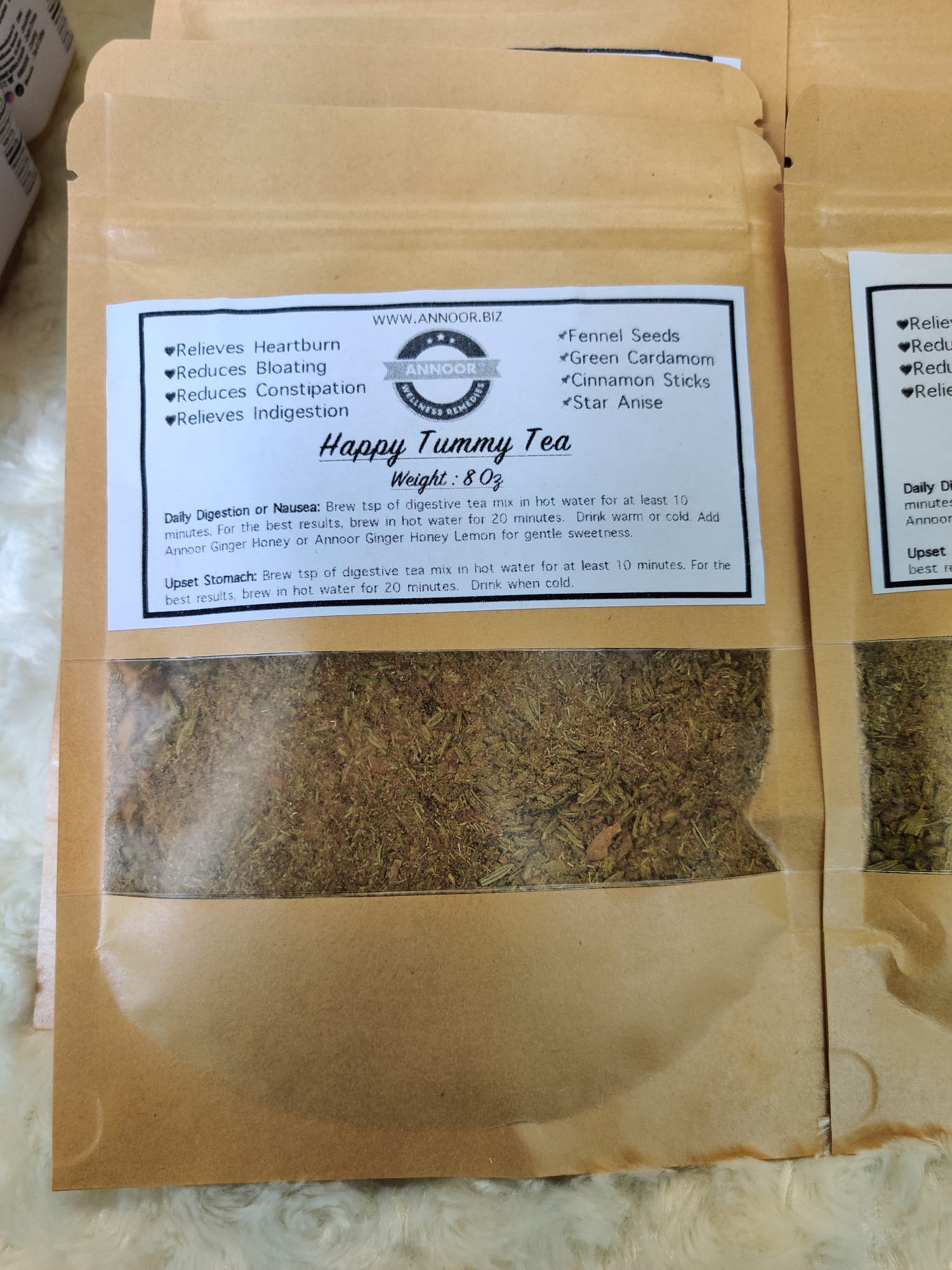 Introducing “Happy Tummy Tea by Annoor” – your daily cup of comfort and calm. Crafted with care, this 4 oz herbal blend offers a naturally soothing experience inspired by traditional herbs cherished for promoting balance and relaxation. Each package includes a stainless-steel tea infuser for easy brewing and convenience.